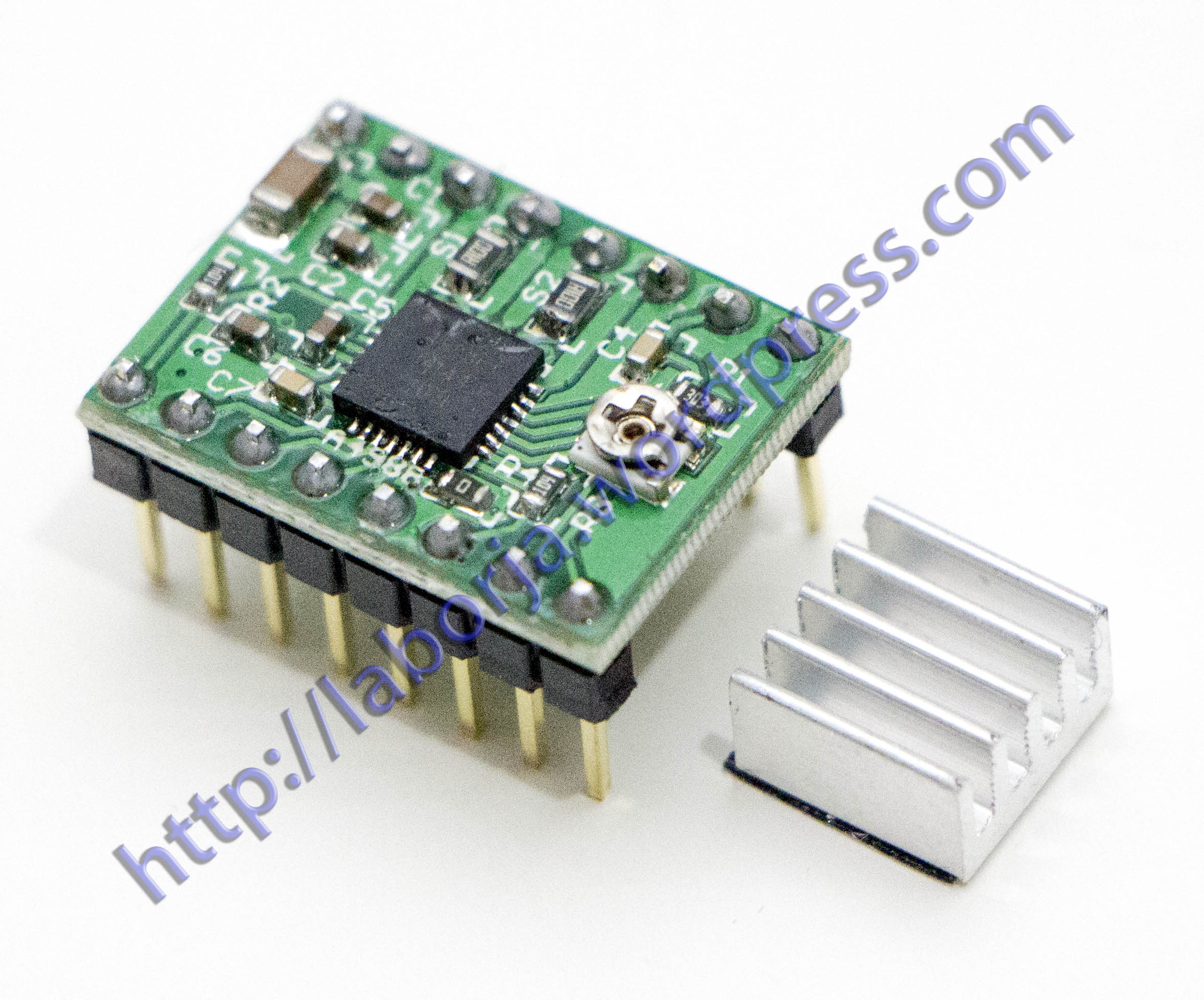 A4988 is a complete microstepping motor driver with built-in translator for easy operation. This product is available in full, half, 1/4, 1/8 and 1/16 step modes operate bipolar stepper motors, output drive capacity of up to 35 V and ± 2 A. A4988 includes a fixed off-time current regulator, the regulator in slow or mixed decay modes. A4988 converter is the key to the easy implementation. As long as the «step» input inputting one pulse drives the motor one microstep. There are no phase sequence tables, high frequency control lines, or complex interfaces to program. A4988 interface is very suitable for complex microprocessor is unavailable or is overburdened.