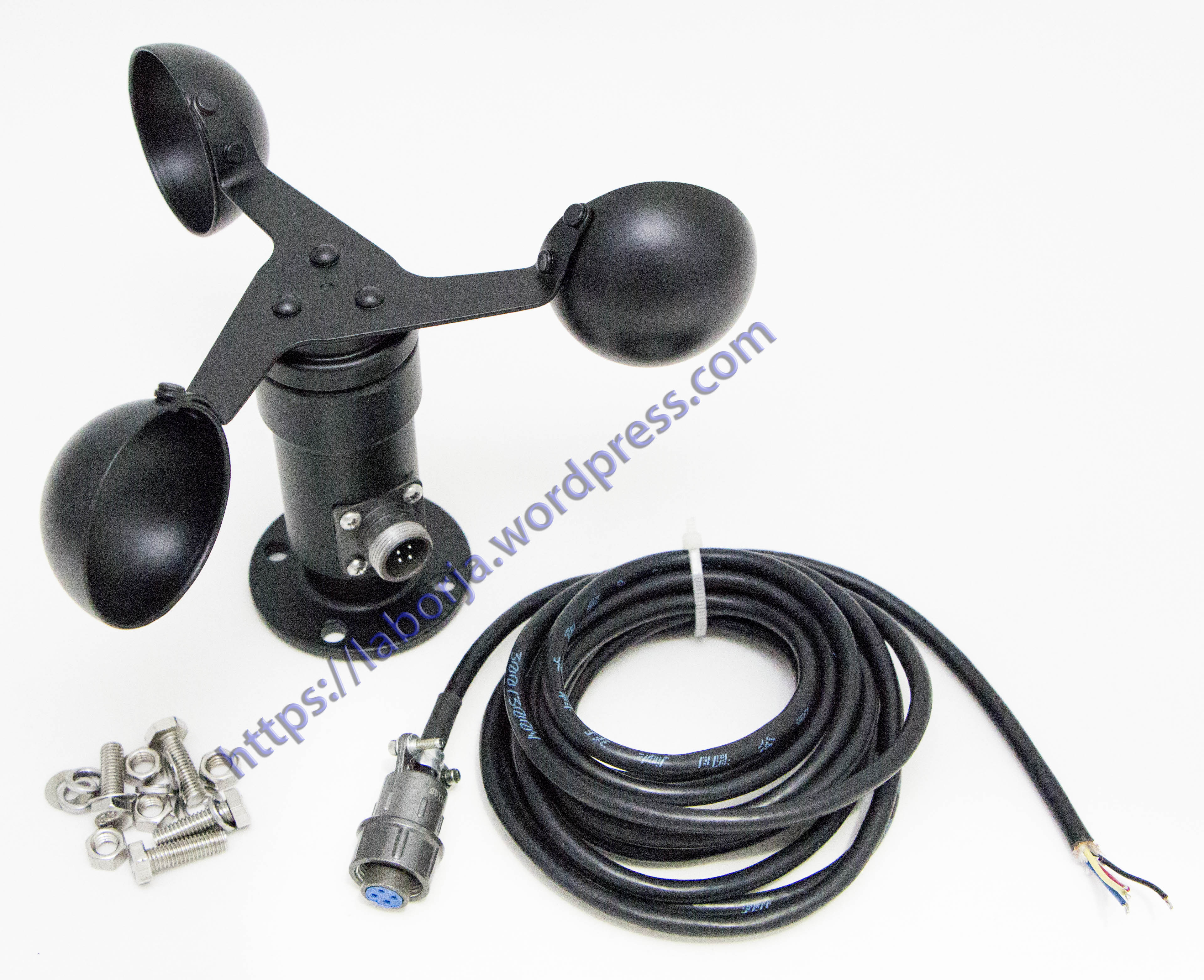 An anemometer is a device used for measuring wind speed, and is a common weather station instrument. This well made anemometer is designed to sit outside and measure wind speed with ease.