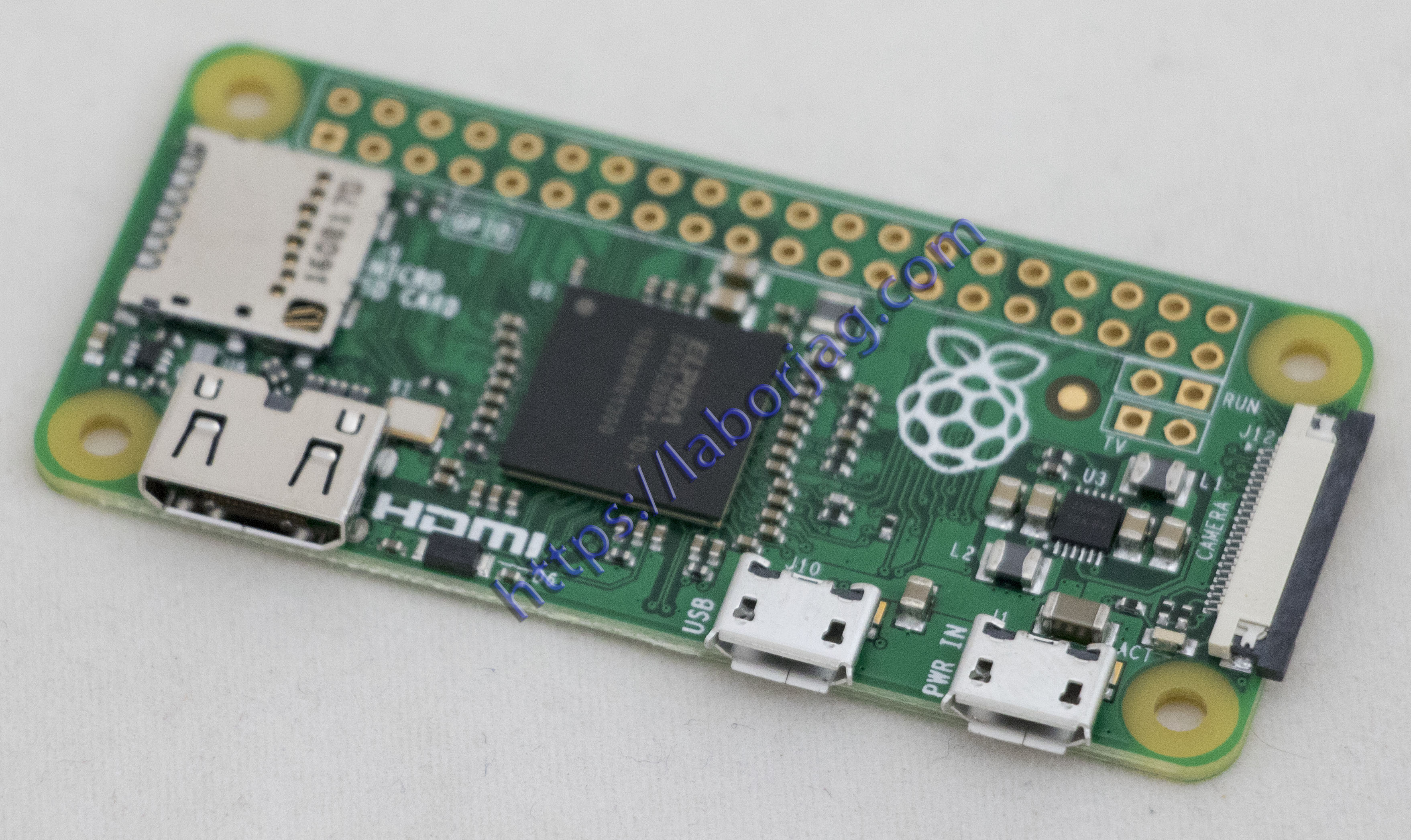 RUN Mode Pins: There are two unpopulated RUN mode pins, which can be used to connect a reset button to the Pi Zero. Again, you’ll either have to add the pins yourself, or solder a button straight to the board.